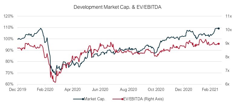 A good year after the outbreak of the Corona pandemic, the market capitalisation of the companies in the Global Business Services Index reached pre-crisis levels. In addition to a general market recovery, an increased interest of investors in value companies can be noted. Compared to the evolution of several main European indexes, we see further potential in the market capitalisation of the companies in the Business Services Index.