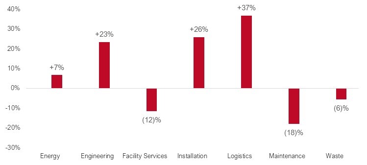 The Investec Business Services Index tracks real-time developments in sectors such as Energy, Engineering, Facility Services, Installation, Logistics, Maintenance and Waste.