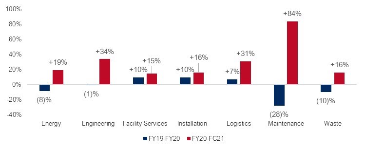 EBITDA growth by sector 2019/20 & 2020/21 (index +24.9%):