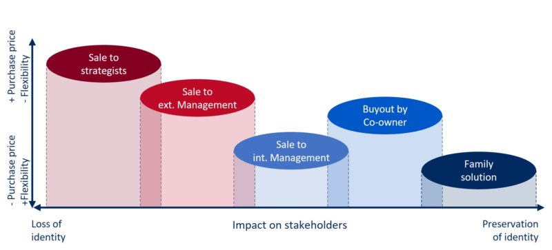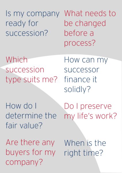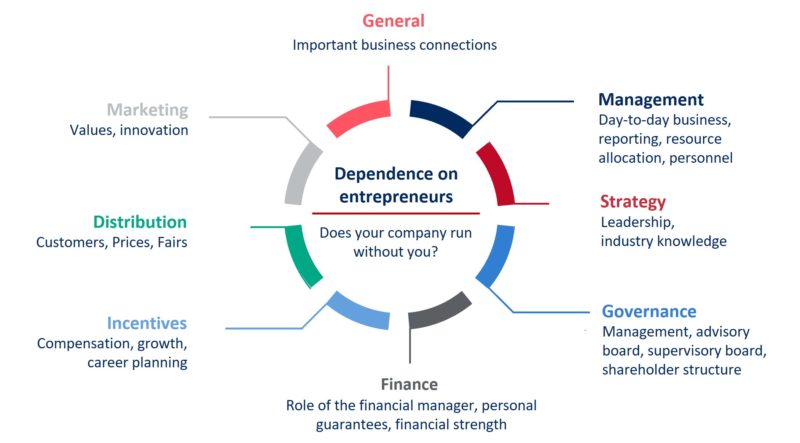 Medium-sized companies are often strongly influenced by their owners. They are also often the bearers of know-how, have decisive contacts to customers and suppliers and are the person of trust towards the employees. They are the contact person for all major problems.