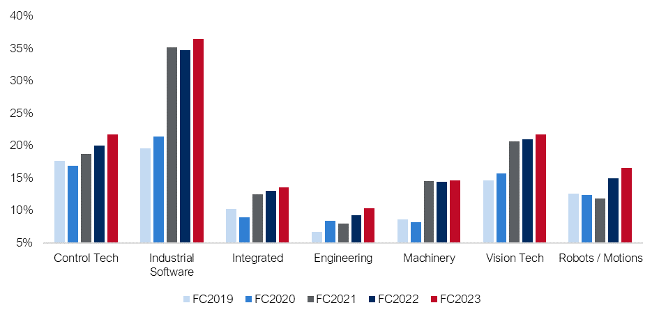 Industrial Tech Bewertungentwicklung 2019 – 2023