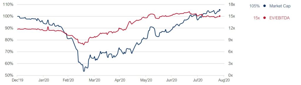 Integrierte Konzerne werden aktuell mit einem Multiplikator von 15x EBITDA bewertet, 28% höher als vor COVID-19.