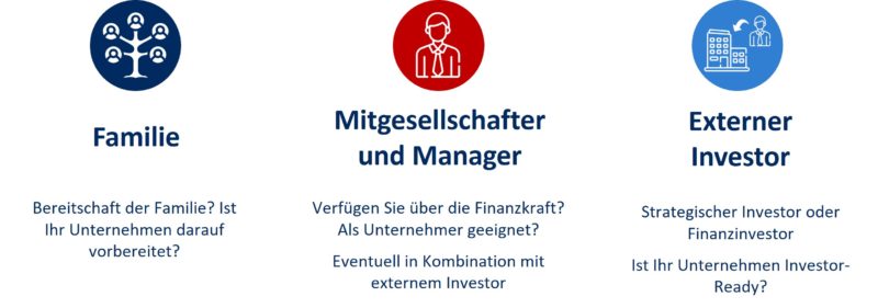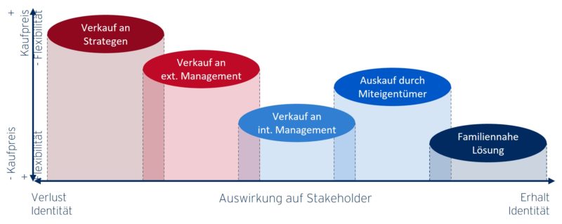 An wen man das Unternehmen überträgt, hängt von vielen Faktoren ab, die man realistisch einschätzen sollte, bevor man einen Prozess anstößt. Wichtig ist es, das unvoreingenommen zu tun und keine „Glaubensätze“, wie der Stratege ist gut der Finanzinvestor schlecht usw., zu verfolgen. Alle Optionen sollten realistisch in Bezug auf die Zielerreichung betrachtet werden.