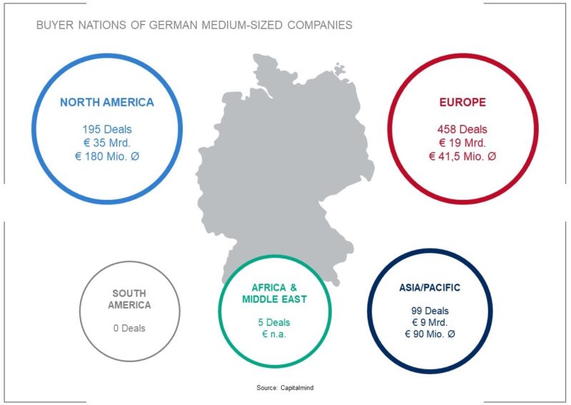 German SMEs are in great demand in the international consolidation of many industries. Every year, more than 1,000 medium-sized companies change hands in Germany for an average of ten times the EBITDA. In this increasingly professional market segment, a large number of potential buyers are now available – especially from abroad. Over 750 German companies were acquired by foreign buyers in 2019. The majority of overseas buyers come from the USA (131) and China (39), but India, Japan and the ASEAN states are also gaining in importance.