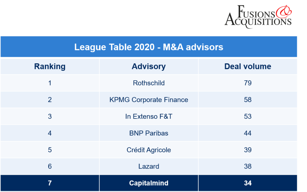 We are proud to have been ranked #7 in the M&A league table from Fusions & Acquisitions magazine with 34 France related deals advised accross our European offices in 2020. We would like to thank our clients for their trust and our teams for the incredible job they’ve done throughout this year that was challenging in so many ways…