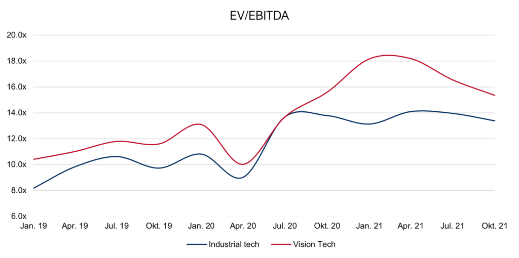 Let’s take a look at how valuations of public vision tech companies have developed, compared to Investec’s Industrial Technology Index, which we update and comment regularly on our websites.