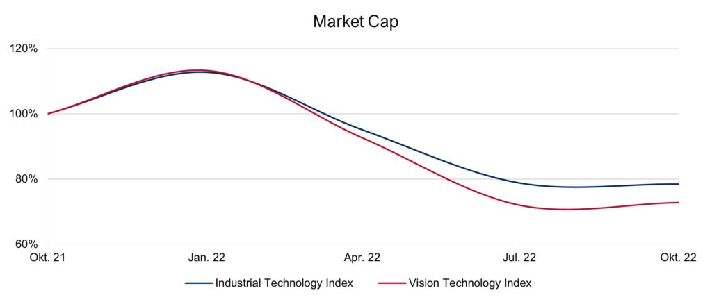 Looking at valuations, both our IndustrialTech and the VisionTech indexes reflect overall market development in terms of market cap since early 2022. Following the begin of the attack against Ukraine and increasing pressure on margins due to cost developments M&A sentiment has somehow slowed. Nevertheless, strategic rationales remain to be valid on many ends and we experience a continuous high level of buy-side interest both from strategic players as well as financial sponsors.