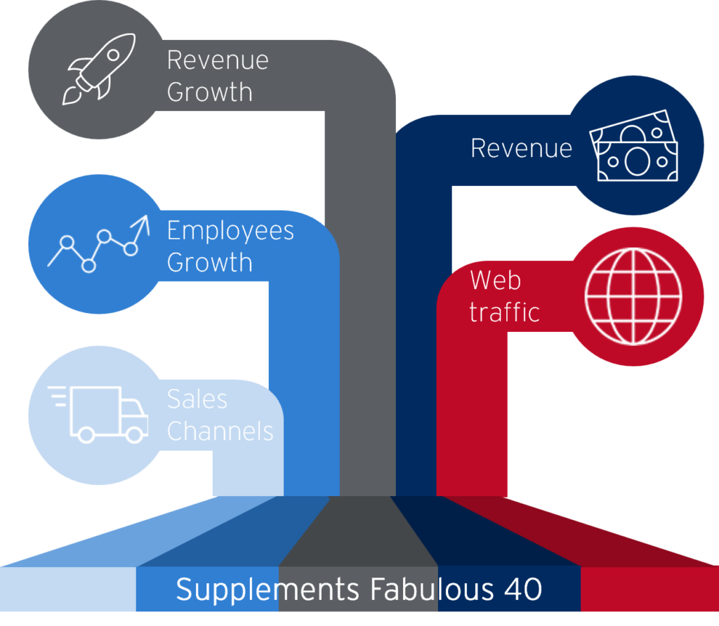For Germany, we identified more than 400 relevant companies in the sector. From these, we have summarized what we consider to be the 40 most attractive in a ranking. To accomplish this task, a comprehensive review of all 400 companies was conducted, assessing them based on five key factors deemed relevant to our evaluation criteria: revenue, revenue growth, employee growth, web traffic, and diversity of distribution channels served. In all areas, a higher number correlated with a more favorable ranking.